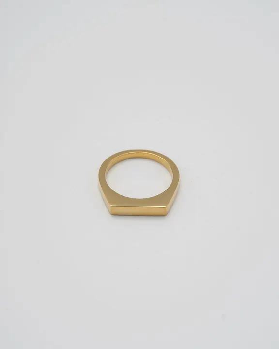 "Proto" series "初期"や"原型"を意味するProtoと冠したシリーズ。 ジュエリーにおける歴史的な背景が最も古いとされているのがシグネットリング。 元々は丸か四角の台座に、家紋を掘ったものがシグネットリングと呼ばれ、左手の小指につけるものでした。 シグネットリングをシャープでシンプルに仕上げた"Proto" signet ringを細くしたリング。 無駄を最大限に省いたシャープな演出はそのままに、よりヘルシーな雰囲気へ導きます。 ジェンダーを問わないデザインで、ペアリングとしてもおすすめです。 SILVER925(sterling silver)にK18コーティングを施した上質な素材を使用しているリング。