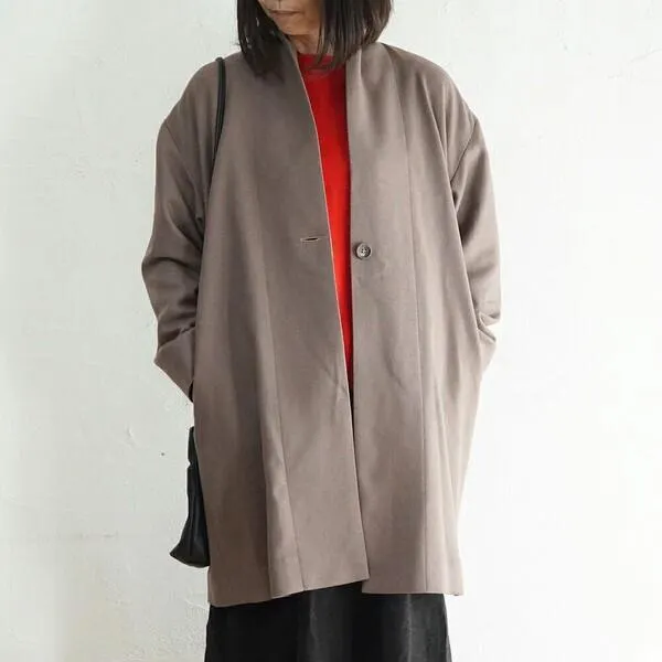 W/Nツイル薄起毛・1つボタンジャケットコート(裏地付き)-モカ-F