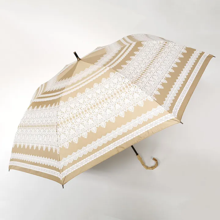 日本政府 推奨商品 ショートワイド傘 竹手元 レース柄 晴雨兼用 UVカット&完全遮光 遮熱 27390 ベージュ