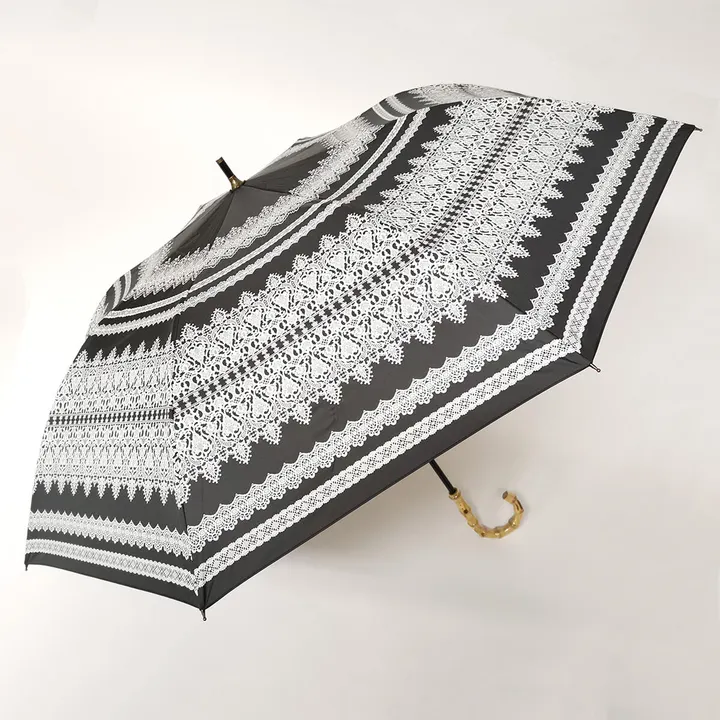 日本政府 推奨商品 ショートワイド傘 竹手元 レース柄 晴雨兼用 UVカット&完全遮光 遮熱 27390 ブラック