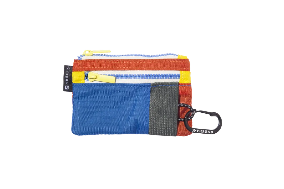 2つのジッパー付きポケットを備えたTHREAD®の最新作「ポーチ・ウォレット」。 これはただの財布ではありません。可愛らしいコンパクトなボディに、カード、現金、コイン、鍵、ガム、ID、その他の小さな持ち物が簡単に収納できます。 鍵用クリップにはゴム紐が付いていて、使わないときは鍵をポケットに収納が可能。鍵を使うときは簡単に取り出せます。ID用の透明スリーブ付きでIDを取り出さずに提示できます。 ・リップストップ生地を採用し、ほつれにくく破れにくい ・使いやすい鍵用の収納ポケット。金属製クリップとゴム紐付き ・ID用透明スリーブ