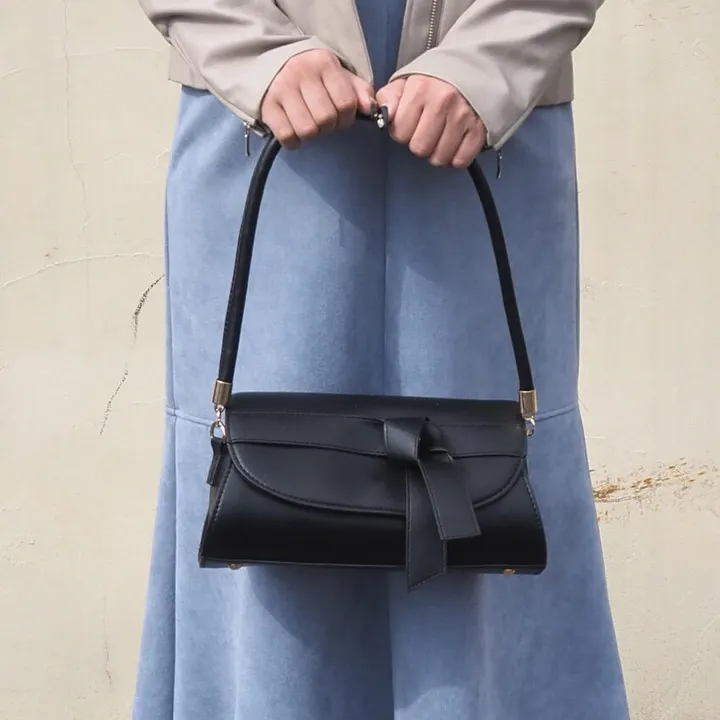 25SS NEW【軽量2WAY】ワイドリボンフラップバッグ BLACK