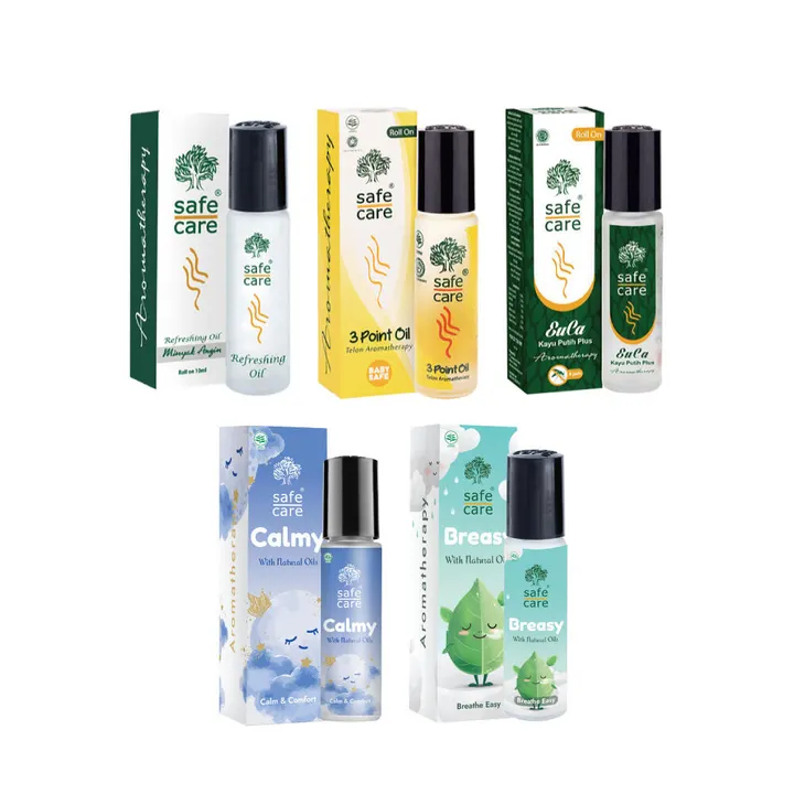 ---------------------------------------------------------------------------------------------------------- ★こちらの商品は、初回検討用として現品商品をサンプル価格にてご提供しています。 クリックポスト郵送となり、送料は1点のご注文につき全国一律200円ご負担頂きます。 サンプルを複数点ご注文頂いた場合で1つに同梱できる際はこちらでおまとめし、送料を200円/1同梱とさせて頂きますが、 クリックポストの重量制限及びサイズの関係で1つに同梱できない場合もありますことご了承くださいませ。 お届けは、郵便受けになります。 ---------------------------------------------------------------------------------------------------------- 100%ナチュラル成分で作られたインドネシアの人気商品のアロマロールオン全5種のお試しセットです。 【セット内容】各1 ・リフレッシングオイル ロールオン 10mL ・3ポイントオイル ロールオン 10mL ・ユーカオイル ロールオン 10mL ・カーミーオイル ロールオン 10mL ・ブリージーオイル ロールオン 10mL 【商品説明】 ①リフレッシングオイル ユーカリやミント、オレンジ、レモンなど5種類の精油をブレンドした天然由来成分100%のアロマオイル。メントール配合でスーッとすっきりリフレッシュできます。インドネシアと日本で大人気の商品。 ②ユーカオイル ユーカリやミント、オレンジ、レモンなど5種類の精油をブレンドした天然由来成分100%のアロマオイル。メントール配合でスーッとすっきりリフレッシュできます。配合されているカユプテオイルは虫よけとしての働きもあり、アウトドア時の肌バリアに◎ ③3ポイントオイル 赤ちゃんも使える天然由来成分100%の保湿&保護オイル配合。ホホバオイルやオリーブオイルが乾燥したお肌にうるおいを与え、フェンネルやカユプテ、ラベンダーオイルなどのハーブの香りがリフレッシュ&リラックスさせてくれます。 ④カーミーオイル カモミール、ラベンダーオイルをブレンド。お休み前のリラックスタイムや心を落ち着けたい時に。(メントール不使用) ⑤ブリージーオイル 気分をリフレッシュさせてくれるペパーミントやユーカリオイルをブレンド。(メントール不使用) ※「カーミーオイル」「ブリージーオイル」は、ココナッツオイルが高濃度で含まれており、24℃前後で固化する状態になる場合があります。 暖かい棚での保管や、固化した場合は、暖かい環境に置いたり、ぬるま湯で液体化するまで温めていただけますようお願い致します。 ※パッケージのデザインは予期なく変更となる場合がございます。 【ブランド紹介】 SAFE CARE(セーフケア)は、2006年にインドネシアで生まれたアロマデザインブランド。アロマテラピーに基づきながらも、今までにない革新的な製品を創り続けています。2012年にはTOP BRAND AWARD、2017年にはINDONESIA WOW BRAND 2017において金賞を受賞するなど、輝かしい賞を受賞しています。また、全ての製品は、Majelis Ulama Indonesiaからハラール認証を取得しています。