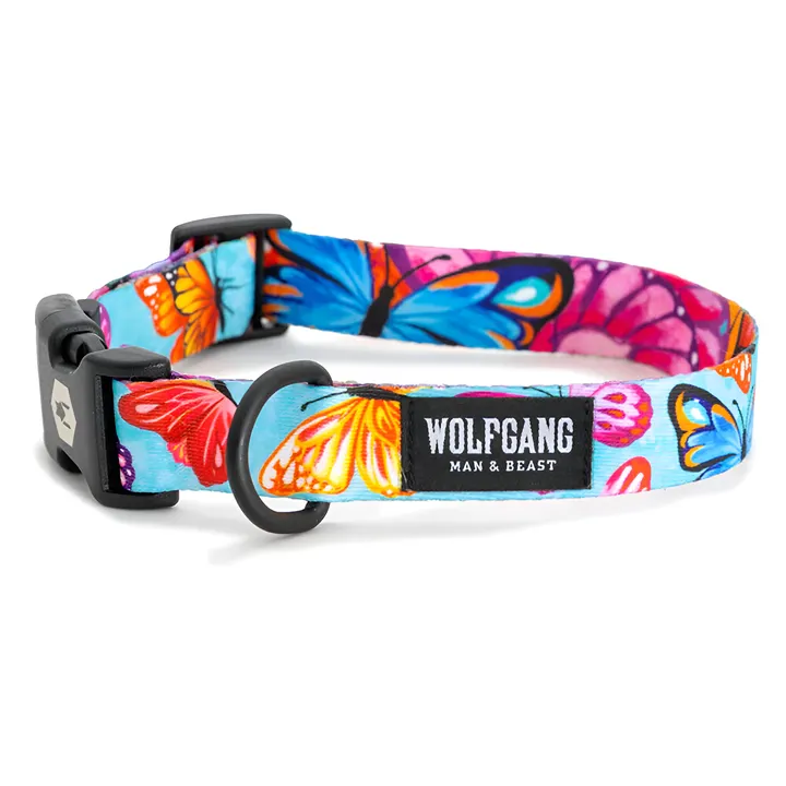 犬用の首輪。 WOLFGANG MAN & BEAST のリードやカラー(首輪)は、車のシートベルトなどにも使われる、強度と柔らかさ、耐久性を兼ね備えたポリエステル100%のウェビング素材を使用しています。 水を吸い込まない、極細のポリエステル糸を非常に密に編むことによって、海や川でも使用可能、汚れや臭いもつきにくい特徴があります。 さらに、ウォッシャブルで洗濯も可能。 アウトドアでの使用にもピッタリです。 製法には、ウェルディング製法( 生地を熱で溶かすことによって生地同士を接着し、強い耐久性を実現する溶着製法 )を採用。 糸による縫い目が無いので、飼い主・愛犬にとって快適な使い心地を実現。通常の縫製による擦れからの糸のほつれが生じることがありません。   WOLFGANG MAN & BEAST のすべてのドッグプロダクトは、こだわりのアメリカンメイド。 ドッグプロダクトは、大切なパートナーである愛犬が、長年愛用できるものであってほしい。 その思いから、選び抜かれた素材を使い、品質にこだわり、WOLFGANG MAN & BEASTのすべてのドッグプロダクトはアメリカ国内で生産されています。 <Sサイズ:対応犬種の目安> ジャック・ラッセル・テリア/パピヨン/マルチーズ/シーズー/ヨークシャーテリア/キャバリア/ホワイト・テリア/ミニチュア・ダックス ...etc <Mサイズ:対応犬種の目安> パグ/コッカスパニエル/シュナウザー/ボストンテリア/フレンチブルドッグ/オーストラリアン・キャトル・ドッグ/スタッフォードシャー・ブル・テリア/ブリタニー/サルーキ/ビーグル/柴犬/ダルメシアン/ウェルシュ・コーギー/ボーダー・コリー ...etc <Lサイズ:対応犬種の目安> ボクサー/ゴールデンレトリバー/ジャーマン・シェパード/ロットワイラー/シベリアン・ハスキー/ブルドッグ/コリー/アメリカン・ピットブル・テリア ...etc 上記の犬種はあくまで目安です。個体によりサイズは変わりますので、購入前に必ず愛犬の実際のサイズを計測して適合サイズを確認してください。