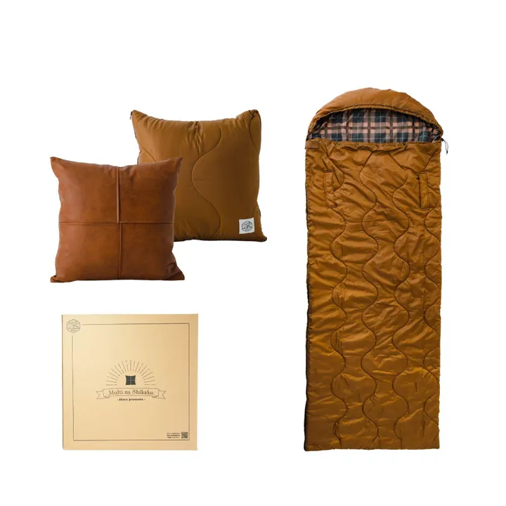 これまでの寝袋は、そこにあるだけで限られたスペースを占拠し、空間のデザイン同士がぶつかってしまうという問題を抱えていました。 そんな空間演出にネガティブな印象が強かった寝袋を、逆にインテリアの魅力を引き出すことをコンセプトに作られた多機能シュラフが「マルチナシカク」です。 マルチナシカクが他と違う一番のポイントは、寝袋に専用カバーを被せる点です。これにより、寝袋にも関わらずオシャレなクッションと何ら遜色ないデザインとなります。 だからと言ってサイズも大きすぎるわけではなく、女性が抱えるにちょうどよいコンパクトサイズです。携帯性が高く、日常生活におけるあらゆるシーンで空間を邪魔しません。 寝袋の内側・外側の色味と柄は、自宅や車内などテント内外でも使用することを想定してデザインしています。 車内でも限られたスペースを圧迫しない、ちょうど良い大きさです。助手席、後部座席どちらに置いても、お気に入りのプライベート空間をオシャレに彩ります。 いつもそこにあるクッションだからこそ、災害時にはすぐに持ち運びができます。万一のことが起きたときにも、防災バッグと一緒に抱えて避難するだけです。避難先での寝具としてお使いください。 こだわりの機能・デザイン ・人気のオニオンキルト(ひょうたん柄) ・飽きさせないチェック柄 ・肌ざわりの良いカシミヤタッチ ・寒い場所でも暖かく過ごすためのフードと調節紐 ・寝袋に入った状態でも開閉できる内と外のファスナー ・Wファスナーだから足だけだすことも可能 ・髪をファスナーに挟まないガード付き ・腕ポケットで寝袋に入ったままスマホを触れる
