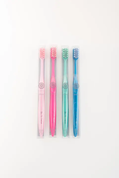 最大の特徴は歯ブラシの毛がハの字に広がりにくいデザインを採用!! 両サイドのタフト(毛の植毛されている穴)を通常より大きめのサイズにすることで毛の広がりを最小限にすることができます。 ⻭科医院に定期的に通われている方の口腔ケアを追求し、 極上の磨き心地 を実現した⻭ブラシ 質の良い毛でデリケートな口腔内を優しくケア!効率よく口腔ケアを行える愛用者に優しい歯ブラシです!! ①世界最高級のドイツ製トルネード毛で 細部への到達性を極限まで高める。 柔らかさ・しなりと強さを併せ持った毛先、柔らかいのに毛先⻑持ち。 ②植毛の先端を細くするテーパード加工により、 極上の磨き心地と⻭周組織の隅々までの毛先到達を実現。 ③植毛穴のサイズをコントロールし、植毛密度を向上させる独自の植毛デザインにより どのような角度で⻭ブラシを当てても全体的に毛先が到達。 ④適度な圧がかかりやすいハンドルデザインで⻭肉マッサージから⻭周ポケット内の汚れの除去、⻭面全体の擦掃までをカバー。隅々までしっかり磨けるプロ仕様の⻭ブラシです!