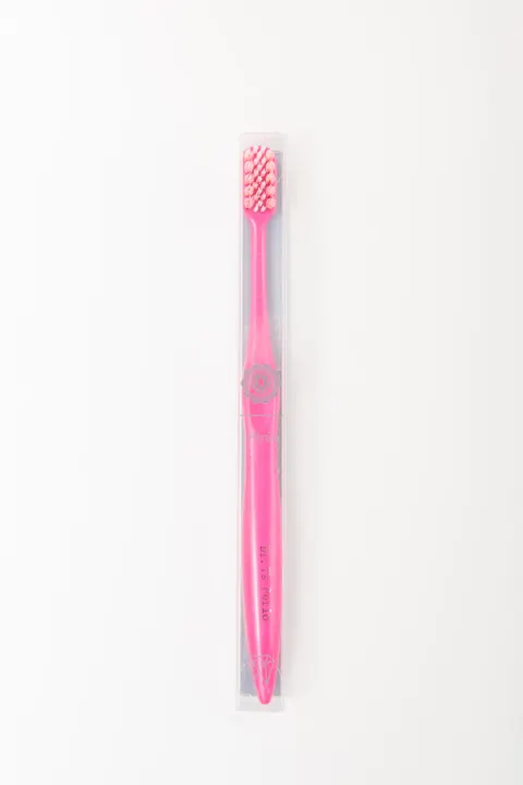 最大の特徴は歯ブラシの毛がハの字に広がりにくいデザインを採用!! 両サイドのタフト(毛の植毛されている穴)を通常より大きめのサイズにすることで毛の広がりを最小限にすることができます。 ⻭科医院に定期的に通われている方の口腔ケアを追求し、 極上の磨き心地 を実現した⻭ブラシ 質の良い毛でデリケートな口腔内を優しくケア!効率よく口腔ケアを行える愛用者に優しい歯ブラシです!! ①世界最高級のドイツ製トルネード毛で 細部への到達性を極限まで高める。 柔らかさ・しなりと強さを併せ持った毛先、柔らかいのに毛先⻑持ち。 ②植毛の先端を細くするテーパード加工により、 極上の磨き心地と⻭周組織の隅々までの毛先到達を実現。 ③植毛穴のサイズをコントロールし、植毛密度を向上させる独自の植毛デザインにより どのような角度で⻭ブラシを当てても全体的に毛先が到達。 ④適度な圧がかかりやすいハンドルデザインで⻭肉マッサージから⻭周ポケット内の汚れの除去、⻭面全体の擦掃までをカバー。隅々までしっかり磨けるプロ仕様の⻭ブラシです!