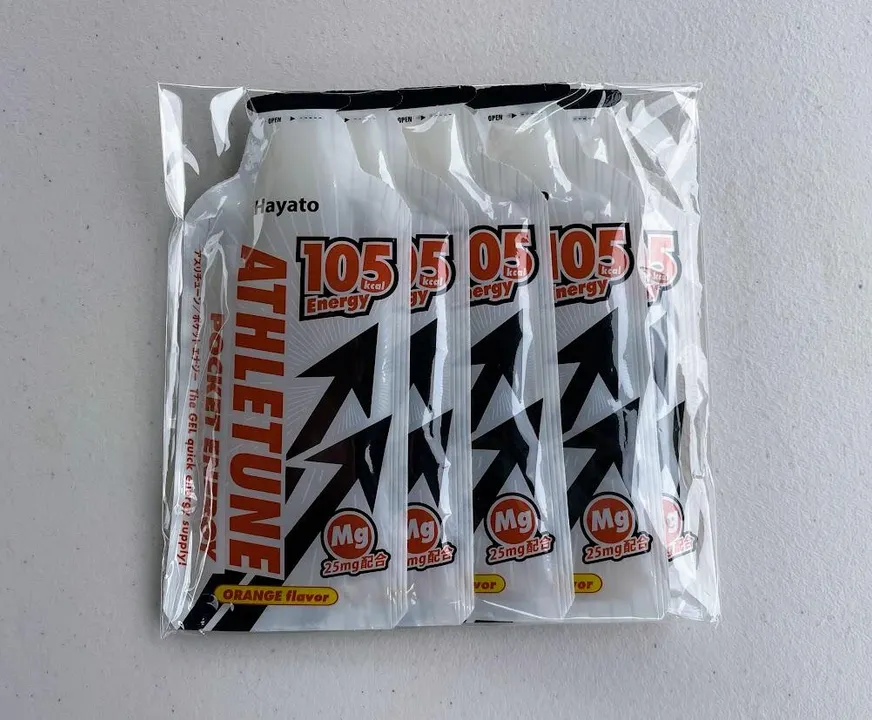 スポーツシーンにおいて飲み心地にこだわった独特なゼリー状エネルギー補給食。体脂肪をエネルギーに変える中鎖脂肪酸(MCT)と、マグネシウムを25㎎配合。1本あたり105kcal。