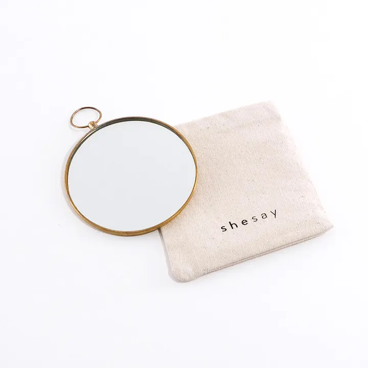 クラシックな佇まいが魅力のコンパクトなミラー。 丸いフックがあるので掛けて使うこともできます。 また、ポーチ付きですので持ち運びにも便利です。 使えば使うほど愛着がわき、長きにわたってお使いいただけます。 BRASS(ブラス)とは真鍮のことで、shesayのBRASS製品はすべて職人によるハンドメイドで生産しています。 独自の質感や深みのある光沢が上品な雰囲気を醸し出し、使うほどに増していく風合いも真鍮素材ならではの特徴です。 年月の経過とともに、自分だけのエイジングを感じられる愛着のあるものへとなっていきます。