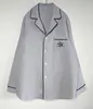 メンズ・パジャマ 高密度のフレンチリネン100% ライトグレー(パイピング黒) M