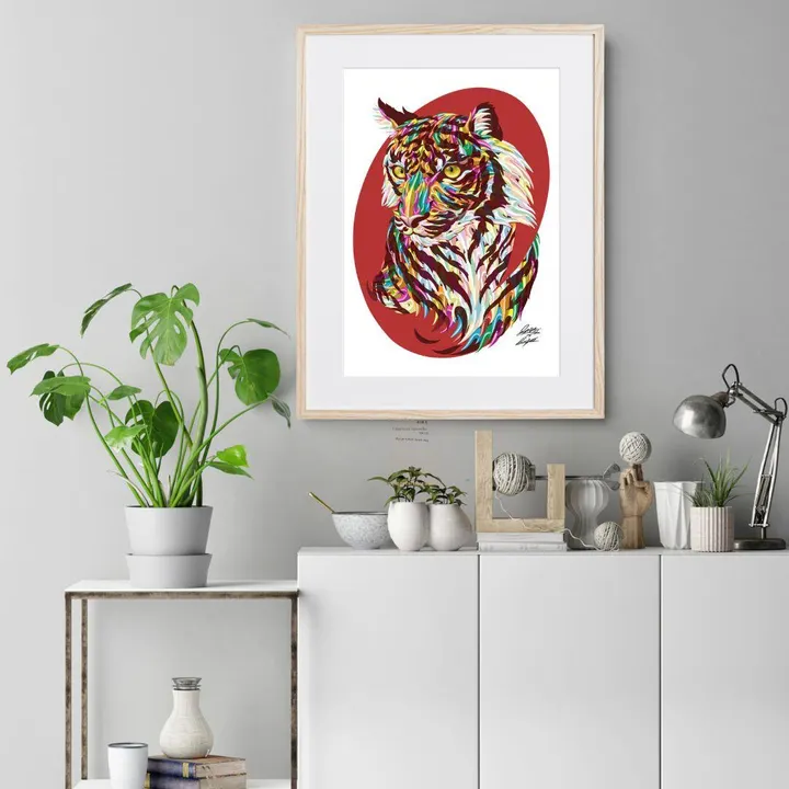 アーティスト -PROFILE- Madblast Hiro(ヒロ) 岐阜県出身。ライブペインター / アーティスト 2021年には大阪府の貝掛中学校の皆様と長さ230mの壁画を制作。 岐阜駅前の繊維問屋街では高さ16mの壁画を制作の他、G-SHOCKやSONY、BETONES等に作品提供を行う。 独自の模様をブロックのように積み上げる表現を突き詰める。 【作品について】 カラフルな色使いはMadblast Hiroの得意とする表現方法の一つ。 躍動的な雰囲気で、見る人を引き込む縁起のよさそうな虎のイラスト 作品名:Mad Tiger 手法:イラスト、デジタル ペーパー:高品質半光沢紙 マットカラー:白 マット*:DXホワイト芯 100%バージンパルプ/PH7・中性紙(2mm厚) ※全てのアートにマットがつきます フレームカラー:黒、白、無垢(3種類から選択) ※マット付のため通常とはフレームサイズが異なる規格となります。 【マット*とは?】 アートポスターの周りに挟んだ厚紙の事。 マットを使わない時に比べ余白により広がりが生まれ、作品の新たな一面を引き出せ作品の見栄えがグッと良くなります。また、額縁のガラス面と作品が直接触れたままにしておくと、くっついて作品を傷つけることがあります。マットを使用することでガラスと作品の間に空間ができ、作品を保護することができます。ブランドコンセプトにより全てのアートにマットがつきます。 ー ファッションのようにアートを ー 私達が掲げるコンセプトです! 毎日着替えるファッションの様に、アートも気軽に飾り変えて欲しい... 一旦飾り終えたアートにも光を当ててほしい... ポスター単体、またはリピートで中身だけのポスターを購入された方に"専用のハンガー"をセットでお届け。 「今までに無い!新しいアートの飾り方を提案」 飾る事がなくなった前のアートをハンガーにかけて洋服と一緒にかけてもらう。 その日の気分や、モチベーションですぐに取り換えられる様に。 もちろん、魅せる収納としても今までにないおすすめの飾り方です。