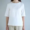 シンプルで毎日暮らしに寄り添う「Tumfu(ツムフ)」シリーズ。 このTシャツは、糸のすき間に空気を多く含む特殊な糸を使用しているため、 肌触りはとても柔らかく、軽いのが特長です。 さらに、汗をしっかりと吸収してくれるので汗ばむ季節でも心地よくご利用いただけます。 脇にはパットを取り付け、汗じみ防止の工夫を施しました。五分袖丈で二の腕をカバー。 丈感はすっきりめなので、バランスよく着ていただけます。 お買い上げいただいた全てのお客様に、大切な方へのプレゼントにも最適な無料のオリジナルパッケージに入れてお送りしています。 About Tumfu(ツムフとは) 「紡いで糸にしてできた布」。 Tumfu(ツムフ)シリーズは、糸の間に空気のすきまをつくる世界初の新しい撚糸技術で開発された糸を使っています。適度なすき間ができることにより、ふっくらやわらかい布に仕上がります。日々の暮らしに寄り添うものだからこそ、心地よさを追求したい。ぜひ一度ご体感下さい。