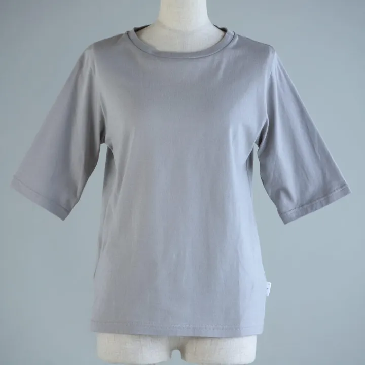 汗ジミ防止・二の腕カバー女性のためのコットンTシャツ(レディース)/5分袖丈 グレー
