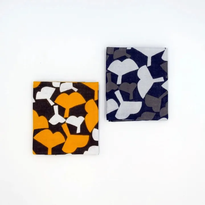 伝統文様と職人技が織りなす、美しく実用的なハンカチ 「幸せの文様」シリーズは、日本の伝統文様が持つ「幸せを願う意味」に着目し、テキスタイルデザイナーとともに生み出したFuwa Marketオリジナルデザインです。 シリーズの一つである銀杏は、「煌めき」「幸運を呼ぶ」という意味を持つ文様。 縁起の良いモチーフを、現代のライフスタイルに馴染むようモダンにデザインしました。 ✔ こだわりの職人技:京都の染色工場で一枚ずつ丁寧に染色 ✔ モダンな伝統文様:3種類の文様×2色展開で選ぶ楽しさ ✔ 柔らかな肌触り:綿100%でずっと触っていたいほどの使い心地 ✔ 上質な贈り物にも:特別な想いを伝える「幸せの文様」 手染めのぬくもりを日常に ハンカチの生地は天然素材の綿100%。 吸水性と通気性に優れた二重ガーゼを使用し、手にしたときのふんわりとしたやわらかさと、日本らしい落ち着いた色合いが魅力です。 手や顔をふく日常使いはもちろん、ブックカバーや、ティッシュボックスカバー、ファブリックパネルなどのインテリアにもおすすめ。 バッグのアクセントとして持ち手に巻き付けたり、中身が見えないように目隠しカバーとしてもお使いいただけます。 縁起のいい伝統文様なので小さなプレゼントを包む際のラッピングや、ご祝儀袋にも。 ポケットやバッグに忍ばせて、毎日をちょっと豊かにしてくれる存在のハンカチ。和の趣を感じる大人のための上質なアイテムを、ぜひ暮らしの中に。 手染めの魅力が際立つ職人技 このハンカチはFuwa Marketのオリジナル生地で、京都の染色工場で職人が一つひとつ手作業で仕上げた特別な逸品。 伝統技法による、深みのある色彩と独特の風合いが魅力です。 柄のアップをみると、手染めならではの繊細な色の重なりが感じられます。 微妙な濃淡やにじみが手作業ならではの風合いを引き立て、唯一無二の美しさを演出。 一版ごとに丁寧に染め上げることで、単なるプリントでは表現できない奥行きと温かみが生まれます。 細部にまでこだわった、和の美しさを引き立てる仕上がり。 使うたびに日本の美しい職人技と伝統文様の意味を感じられます。 職人の手仕事により生み出される、この風合いと温もりの魅力をぜひ感じてください。 銀杏文様に込められた願いや祈り 銀杏の煌めき、幸運を呼ぶ 秋の街路樹といえばイチョウの木。扇のような葉っぱがイエローに染まり、道路は黄金のじゅうたんのよう。 まるで絵本に登場する風景です。このおしゃれなイチョウはとても生命力にあふれ、樹齢1000年を超えるものもあります。  その生きる力には神聖なものが宿るとされ、お寺や神社のご神木としてよく見られます。  生命力の強さには長生きを、末広がりの葉には運の引き寄せを、黄金に色づく葉には金運がよくなるようになど、人々はイチョウの姿かたちに願いをたくしてきました。 カラーは温かみのあるイエロー系と、 シックなグレー系の2色展開。 落ち着いた色合いながらも個性があり、日常生活を彩るアイテムとしても最適です。和モダンなデザインなので浴衣や着物など和装にもよく合います。  ※大きな生地をカットして作るため、柄の配置には個体差があります。ご了承ください。  「幸せの文様」シリーズのラインナップ Fuwa Marketの「幸せの文様」シリーズでは、6種類の伝統文様をモダンにアレンジしたデザインをご用意。 ・銀杏文様(銀杏の煌めき、幸運を呼ぶ) ・市松文様(粋な市松、伝統の美) ・梅文様(無病息災の梅) ・青海波文様(無限の波は豊かさの象徴) ・南天文様(魔除けの南天) ・松文様(松は繁栄のシンボル) お好みの文様を選び、日常生活を華やかに彩ってください。 「職人技×伝統文様」の逸品は贈り物にも最適 「幸せの文様」シリーズは、日本の伝統文様が持つ願いを込めた特別なデザイン。大切な方へのプレゼントとしても喜ばれる、和の心を感じる上品な仕上がりです。 ・友人や家族への誕生日プレゼントに ・退職・異動・転勤のお礼、送別の品に ・お菓子や小物とセットでギフトや贈り物に ・入学祝い・卒業祝い・進学祝い・就職祝いなど新生活を始める人へのお祝いに ・幸運を呼ぶ縁起物としてお礼やプチギフトに ・ホワイトデーのお返しに ・海外の方へのお土産に ちょっとした感謝を伝えるときに。特別な日の手土産に。さりげなく心を添える、和のぬくもりをお届けします。 お好みのデザインを選んで、日常に和の彩りを取り入れてみませんか?