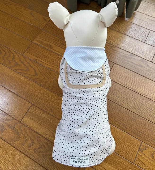 商品名:【熱中症対策クール・ウエア】暑い夏に!遮熱・放熱・UVカット クール・ウエア Sサイズ 全3色:ネイビードット柄(サッカ生地)・ドット柄・パープルチェック柄 *保冷剤ポケット付き 夏の強い日差しと高温は、私たち人間だけでなく、大切な家族である愛犬にも大きな負担をかけます。特に、短頭種(フレンチブルドッグ、パグ、シーズーなど)や、被毛が多い犬種(ゴールデンレトリバー、シベリアンハスキーなど)、そして高齢犬や子犬は、熱中症のリスクが非常に高くなります。暑さを我慢しているうちに、命に関わる危険な状態になってしまうケースも少なくありません。 そんな熱中症から愛犬を守るために開発されたのが、当店の「ペット用クールウェア」です。このウェアには、遮熱・放熱・UVカットの3つの機能を備えており、夏の外出時でも愛犬の体温上昇をしっかり抑えてくれます。遮熱素材が太陽の熱を反射し、放熱性のある生地が体内の熱を効率よく逃がす設計になっています。また、UVカット機能により、皮膚や被毛への紫外線ダメージも軽減。炎天下のお散歩や、アウトドアの時間もより安全・快適に過ごせます。 デザインは機能性だけでなく、着心地にもこだわりました。通気性が良く、動きやすいカッティングで、長時間の着用でもストレスを感じにくい設計です。愛犬が快適に過ごせることを第一に考えた仕上がりとなっております。 暑さが本格化するこれからの季節、**「うちの子は大丈夫」と思わず、事前の熱中症対策がとても大切です。**特に、口呼吸が主な犬たちは、体温調節が苦手。呼吸が荒くなる、ヨダレが多い、ぐったりするなどの症状が見られた場合は、すぐに涼しい場所に避難させ、冷やす処置を行い、必要に応じて動物病院を受診してください。 愛犬の健康を守るために、暑さ対策は「特別なこと」ではなく「毎日の習慣」として取り入れていきましょう。 このクールウェアが、あなたと愛犬の楽しい夏のお出かけを、より安心で快適なものにするお手伝いができれば幸いです。 ※サイズにご注意ください。 Sサイズ 首回り28~33cm 胴回り38~43cm 着丈33cm 素材:クール生地 ナイロン92% ポリウレタン8% 表地:コットン100% お洗濯可能で、いつでも清潔に保つことができます。(洗濯ネットに入れてお洗濯してください)