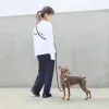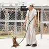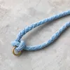 人気のデニムシリーズのショルダーリードです。 デニムパンツのベルトループを4本使用し、丸編みで筒状に編み上げました。 柔らかい素材で身体に馴染みやすく、ハンズフリーで快適なお散歩ができます。 リングを移動させることで、持ち手の長さを自由に調整できます。 また、リングの位置は結び目の位置を変えることで調節可能です。 デニムとヌメ革の組み合わせは、どんなワンちゃんにも飼い主さんにも合う、シンプルで完成されたデザイン。 カジュアルさの中にも個性的なスタイルを演出します。 *湿った状態や使用中の摩擦により他の物に移染する恐れがありますので、ご使用には注意してください。