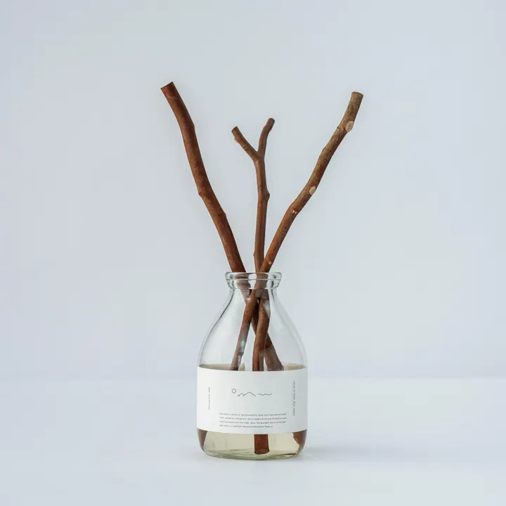 三重県大台町産ヒメシャラの枝をセットにしたディフューザーです。 天然素材だけで作ったシンプルな香りの芳香機。 お部屋の中で森林浴をしているような、やさしく広がる森の香りと自然素材故の表情の違いをインテリアにしてお楽しみください。 ※専用ビンとヒメシャラの枝3本、スティック2本、フレグランスウォーターを箱に入れた状態でお届けします。 【森林の香り】 大台町産スギ、ヒノキの精油と他天然由来精油を加え、蒸留時に抽出される大台町産クロモジ、タムシバ、カナクギノキ、スギ、ヒノキの芳香蒸留水をベースにした天然香料のみでブレンドしました。 爽やかで奥ゆかしい森林の香りをイメージしています。 ※「森林の香り(微香)」に比べて香りの広がり方が強めのフレグランスです。 ※液体色が天然原料本来の色によって少し黄色がかっています。品質や香りなどに影響はなく問題ございません。 【森林の香り(微香)】 香り成分を全て大台町産の5種の樹木(クロモジ、タムシバ、ヒノキ、カナクギノキ、スギ)から抽出した精油と芳香蒸留水を使ってブレンドしました。 やさしくひろがる森の香りをお楽しみください。 ※「森林の香り」に比べてほのかで優しい香りがするフレグランスです。 ※液体色が天然原料本来の色によって少し白濁しています。品質や香りなどに影響はなく問題ございません。