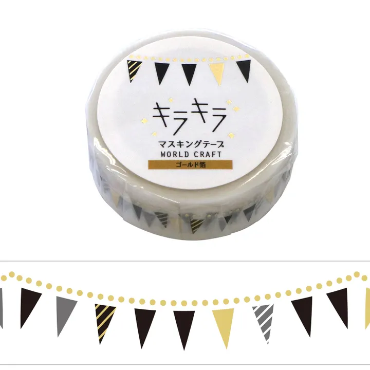 【 キラキラマスキングテープ 15mm Garland】  ★★ 箔を使用した、キラキラが可愛いキラキラマスキングテープ 〜 第3弾  Sky、Room、Textile の3つをテーマに <12柄> を揃えました ★★ カラフルなガーランドはあってもモノクロで大人っぽいマステが欲しい! そんなときにオススメのシックなガーランド柄です。 デコレーションの際、モノクロな色合いがぐっとおしゃれさを引き出してくれます◎