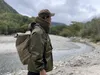 albertonロールバックパックは米軍の軍用資材規格で開発されたアルバートン社のアーミーダックを使用。日本の規格には無い高密度で織られた帆布は耐久性に優れています。 日本の染色加工場でクォリティーに拘ったオリジナルカラーに染めました。 ベルト部分にはヌメ革を使いダイキャスト製のバックルでしっかりと受け止めています。 側面に貫通ファスナーがあるので出し入れは簡単 表面、側面、内部にポケットを配置していますので便利にお使い出来ます サイズ タテ62㎝(口元折り曲げて44㎝) ヨコ30㎝ マチ15㎝ カラー3色 コヨウテ カーキードラブ クロ