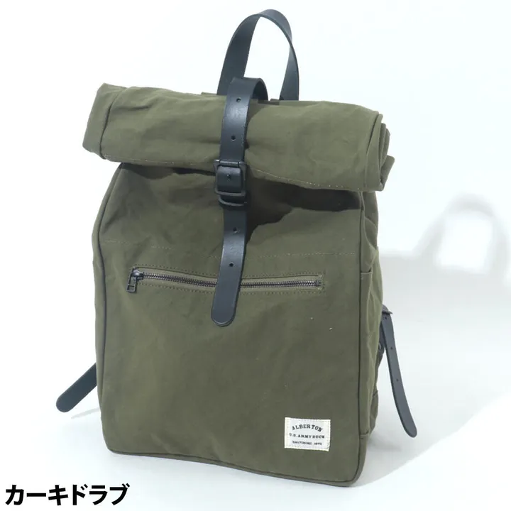 ALBERTON 米軍帆布ARMY DUCKのロールバックパック カーキードラブ