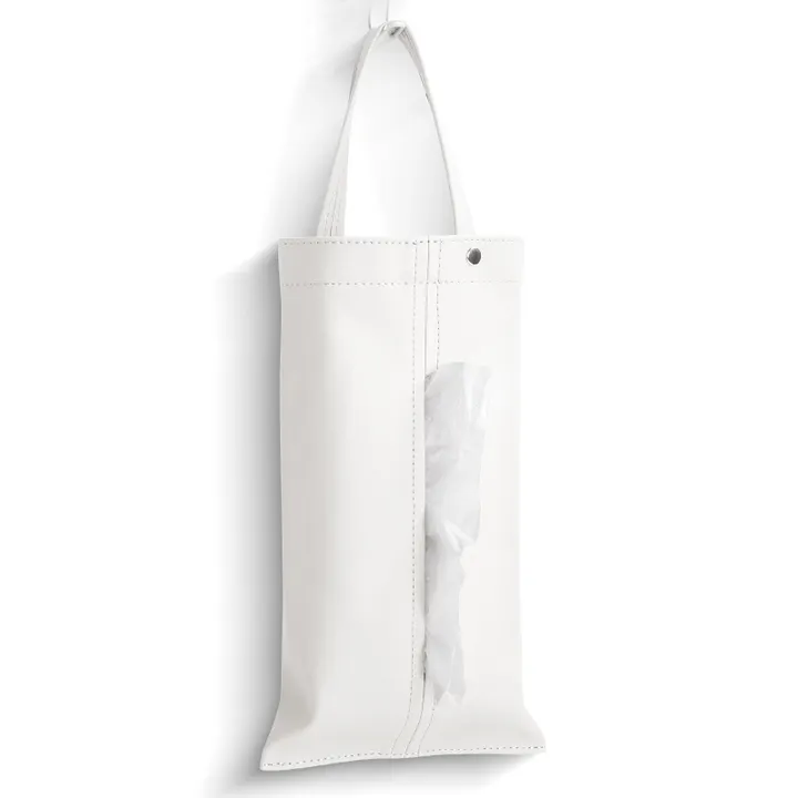 置き場所に困るティッシュも、これでスッキリ♪ おしゃれな吊り下げティッシュケースなら、 フックやドアノブに掛けるだけで生活感を隠せます。 高品質な合皮素材で水も弾くので、 洗面所やキッチン、車の中でも安心して使えます。 段階調節の取っ手付きで、 ベビーカーや玄関ドアにも吊り下げ可能。 キッチンペーパーやマスクなど、自由に収納♪