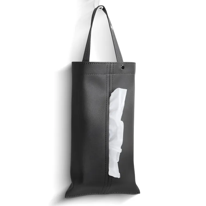 置き場所に困るティッシュも、これでスッキリ♪ おしゃれな吊り下げティッシュケースなら、 フックやドアノブに掛けるだけで生活感を隠せます。 高品質な合皮素材で水も弾くので、 洗面所やキッチン、車の中でも安心して使えます。 段階調節の取っ手付きで、 ベビーカーや玄関ドアにも吊り下げ可能。 キッチンペーパーやマスクなど、自由に収納♪