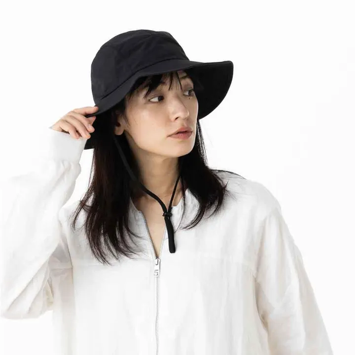 レディース 帽子 サファリハット アドベンチャーハット 撥水 モスグリーン ブラック 春 夏 秋 冬 SN005 ブラック