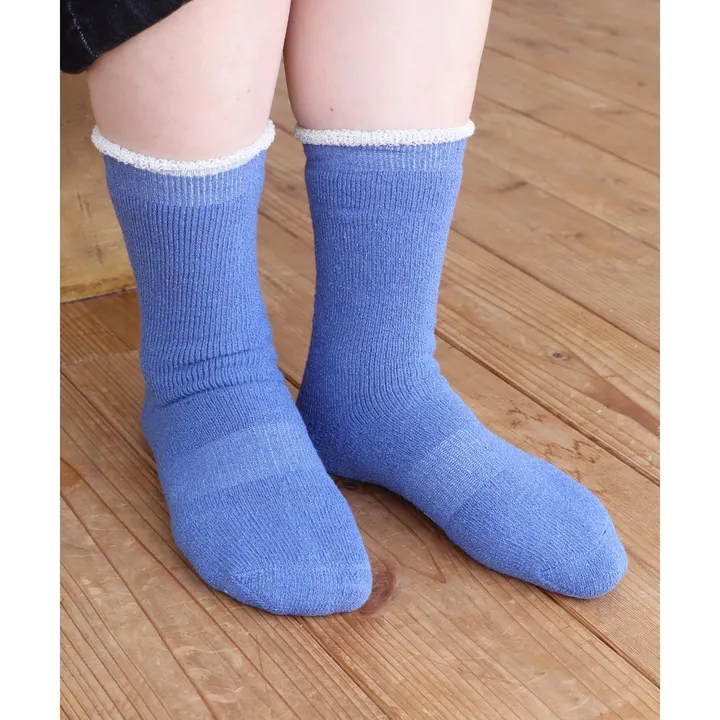 【1Pソックス】コットンパイル 柔らかクルーソックス【レディース】 55 ブルー Sサイズ:22.5-24.5cm