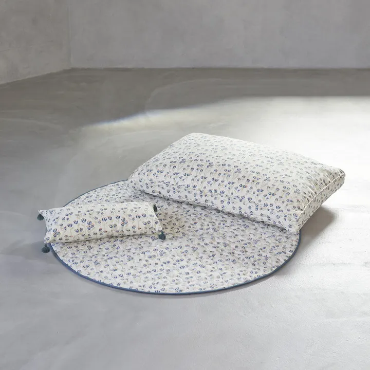 お花畑で寝転ぶようなイメージで作られたラウンド型のフロアマットは、部屋のポイントとしてインテリア映えを意識したアイテム。 お子様のお昼寝時に寝かせておく場所としても最適なマットです。