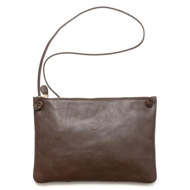 ショルダーバッグ ・内ポケット×1 ・外ポケットx1 スマートフォンや長財布が入るサイズ感のショルダーバッグ。 ショルダーストラップを外すとクラッチバッグやバッグインバッグとしても使用出来ます。 ファスナー引手のタッセルがアクセント。 素材:VOLANATO 長い間、CI-VA の使用する革の中で最も多くのモデルに使用されています。自然で不均等なシボとソフトな風合いが特徴です。 永年使い込むことにより手や体に馴染み、深みある色合いに変化していきます(特に「カラー/Natural」 は全く染色していないので、変化が顕著に現れます。日本ではヌメ革と呼ばれます)。 原産国:イタリア