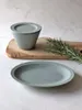 シャープなフォルムと爽やかなカラーでクールビューティーなシリーズ ハーブを使った料理や人気のアジアン料理やエスニック料理に相性が良さそうです カラーはグレー・パルグリーンの2色 ヌードルポット本体と蓋になる受け皿、21cmオーバルプレートがあります 磁器製ですので取り扱いも便利です