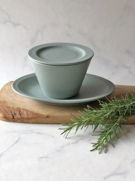 マット釉 ヌードルポット 蓋/受け皿 パルグリーン 01425