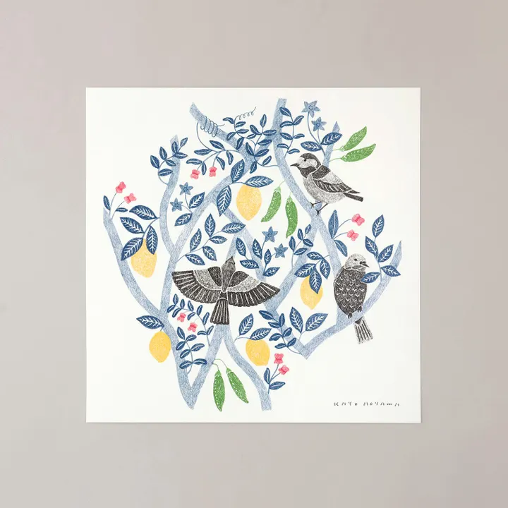 ※フレームは別売りです <デザイナープロフィール > 青山佳世 (kayoko aoyama) 大阪外国語大学卒業後に渡欧し、HDKヨーテボリデザイン工芸大学にてテキスタイルのデザインを学ぶ。現地の壁紙メーカーやミナ・ペルホネンでの経験を経て、フリーランスのデザイナーとして活動。様々な画材の色のにじみや線の揺らぎを活かした繊細な筆致と、温もりを感じる作風が人気を博している。 <About the Paper> 発色の良さと紙の風合いという相反する性質を高いレベルで両立させた高級印刷用紙で、FSC認証※も取得しているヴァンヌーボV-FSの最厚紙を使用。 ※FSC認証とは「森林の管理や伐採が環境や地域社会に配慮して行なわれているかどうか」を評価・認証し、そうした森林に由来する製品(適正管理された森林木材による製品)であることを証明するものです。運営は、NGOであるFSC(Forest Stewardship Council®:森林管理協議会 本部ドイツ)が行っています。 <サイズバリエーション> ・200×200mm ・300×300mm