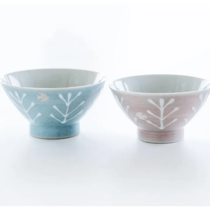 ペア茶碗ギフトボックスのご提案です! イッチンで描いたツリーの間にツバメが飛んでいます。 ペアで並べると夫婦で向かい合うデザインがポイントです。 ブライダルギフトなどのご提案はいかがでしょうか?