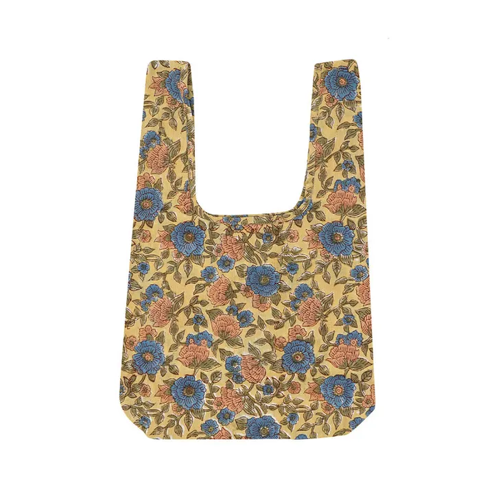 ミツオリエコバッグ カリーノブロックプリント イエローオーカー