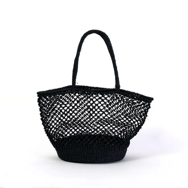 上品なアバカの透かし編みバッグ BK(ブラック)