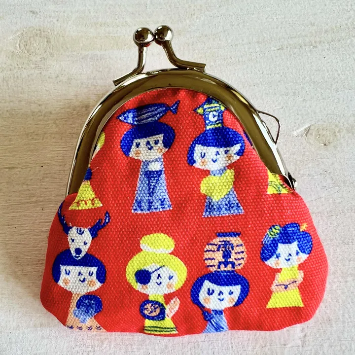 47都道府県のこけしちゃんを描いた「旅するこけしちゃん」シリーズの おさいふ。 アクセサリーを入れたりポーチとしても。 日本・仙台は『こけし』の名産地。 仙台から、こけしちゃんが日本全国を旅します!! 各地の名産品を頭やドレスにつけた 47都道府県のこけしちゃんのイラストが完成!! 札幌、仙台、東京、大阪、 京都、高知、奈良、福岡のこけしちゃんが プリントされたかわいいおさいふ(がま口)!! 表面と裏面は同じ柄になります。 おさいふの中の布地は、赤ベースの柄や麻など 都度違います、ご了承お願いいたします。 サイズ/横9cm×縦(金具含み)9cm 1個入り。 オリジナルプリント オックスフォード生地 *PCモニターやスマホ画面と色が違って見えることがありますので、 ご了承お願いいたします。