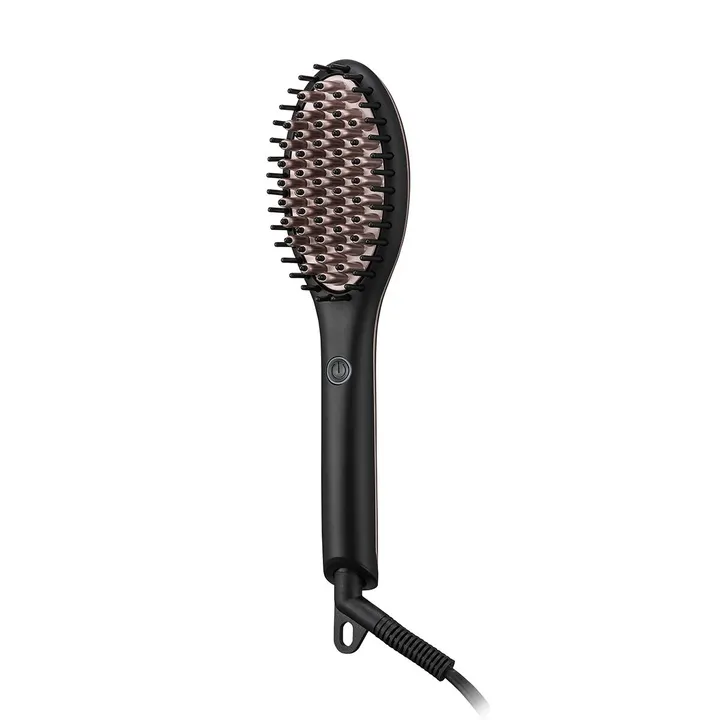 スタイリングをもっと快適に! ブラシで髪をとかすだけで簡単ナチュラルストレートが実現。 定番のブラシ型のため、どなたでも簡単にお使いいただけます。 電源を入れていつもどおり整えるように髪をブラッシングするだけ! 軽量で持ち手部分も細いスタイリッシュデザインのため、 女性でも持ちやすく、負担にならずに毎日お使いいただけます。 ボタン1つで温度調節が自由自在! 電源のオンオフから、175℃→195℃→215℃までの温度の切り替えも ボタン1つでラクラク操作できます。 30分で自動でオフになる安全装置も搭載。 コードが360度回転するため、コードのねじれや絡まりを防ぐとともに ブラッシングする角度や方向を選びません。 海外使用対応100-240V対応しているため、 対応電圧の国では、変圧器なしでお使いいただけます。 ※変換プラグ・変換アダプターは別途必要となりますのでご注意ください。