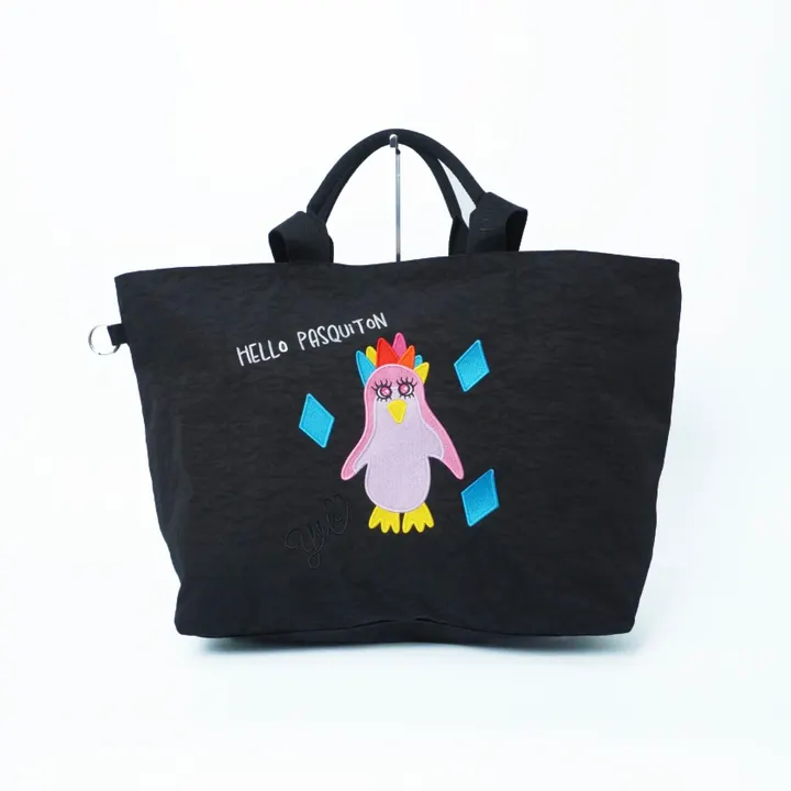 【商品説明】アーティストYUのパスキートンフレンズの刺繍がとてもキュートです。 ▲お取り扱いの注意 本製品は濃色、刺繍糸の色落ちすることがあります 洗濯は単独で洗って下さい。 〔サイズ詳細〕 高さ 37㎝ 横幅〔上部〕60㎝ 横幅〔下部〕44㎝ マチ 18㎝ ハンドルの高さ 15.5センチ ショルダーの高さ 36㎝ 〔素材〕 ポリエステル100% made in china 旅先でも可愛いバッグを持ちたい、そんなあなたにおすすめのトラベルbag。軽くて丈夫なので、旅行にも日常にもぴったりです。pasquitonキャラクターの刺繍があしらわれたデザインは、きっとたくさんの人の目を引きます。 特に、このバッグの素材は洗えるのが嬉しいポイント。旅行先で汚れが気になっても、帰ってすぐに洗えばいつでも清潔に使えます。また、コンパクトなので旅先での機内持ち込みにもオススメです。 このトラベルbagを持って旅に出かけると、一気に気分も上がります。普段使いでも可愛く持てるので、ぜひ一つ持っておくと便利です。