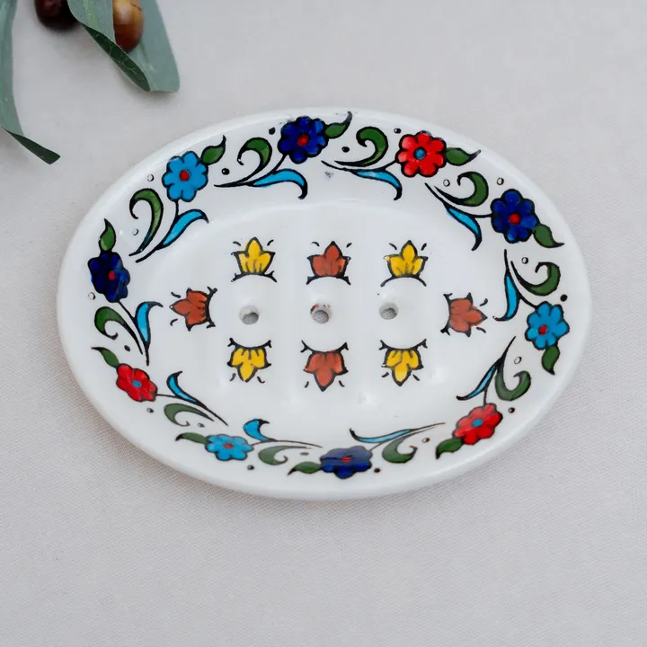 【バスグッズ】ヘブロン陶器のソープディッシュ(フェアトレード・手絵付け)
