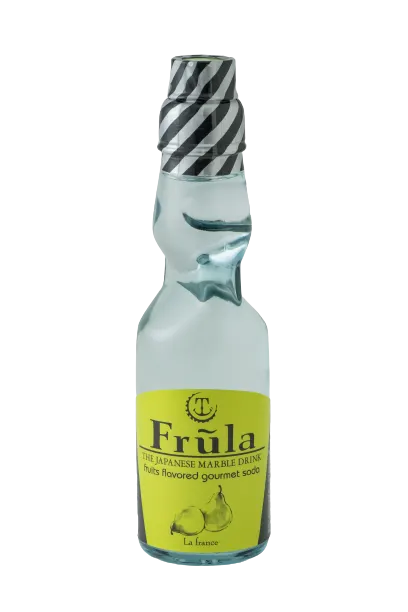 果実のフレーバーを使用し、ネーミング・パッケージともにお洒落に仕上げた炭酸飲料です。 新商品名「Frula(フルーラ)」の語源は果実の「Fruit(フルーツ)」と「Lamune(ラムネ)」の造語に、 花のイメージの「フローラ」も兼ねたもので、この商品の顧客層として想定している若い女性や輸入食材など、 こだわり商品を取り扱われているお客様にご納得頂けるネーミングを採用しました。 パッケージには日本の伝統的な炭酸飲料で、創業以来の商品でもあるラムネの容器を採用しつつ、 デザイン性にもこだわり抜いた形で商品化に成功しました。 新ジャンルの炭酸飲料としてぜひご検討下さい。
