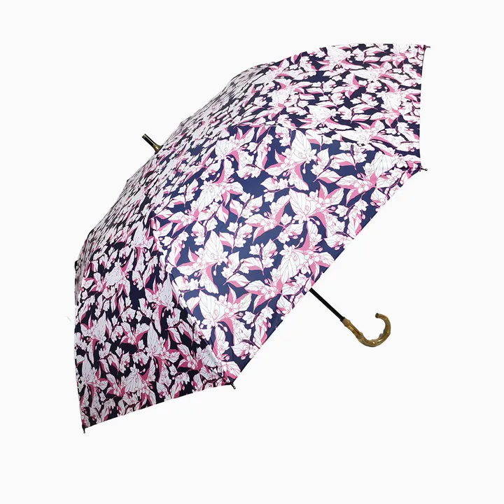 日本政府 推奨商品 ショートワイド傘 竹手元 ゴージャス花柄 晴雨兼用 UVカット&完全遮光 遮熱 27389 ネイビー
