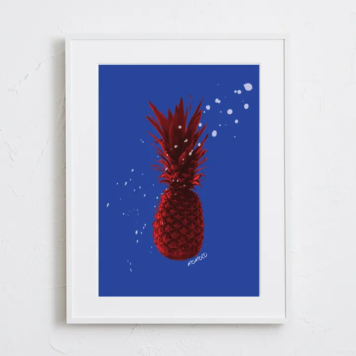 アーティスト -PROFILE- MOMOCO(モモコ) 「色」をこよなく愛する画家、ライブペインター。 躍動感あるアートにも関わらず、服を一切汚さず短時間で音楽と同時に描き上げる。そのパフォーマンスと巨大アートは観る人を魅了する。 前職は某有名ファッションブランドにてデザイナーとして活躍。その経験の中で養われた「色とデザイン」の絶妙なバランスを活かしつつ、トレンドを取り入れ進化し続けるアートを目指す!国内外問わず、精力的にアートと向き合い発信を続けている。 【作品について】 赤色のパイナップルをモチーフに青色背景がおしゃれなアート 白ペインティングもアクセントに シンプルなデザインなのでどんなインテリアにも相性よし! 作品名:ブルーパイン 手法:デジタル、イラスト ペーパー:高品質半光沢紙 マットカラー:白 マット*:DXホワイト芯 100%バージンパルプ/PH7・中性紙(2mm厚) ※全てのアートにマットがつきます フレームカラー:黒、白、無垢(3種類から選択) ※マット付のため通常とはフレームサイズが異なる規格となります。 【マット*とは?】 アートポスターの周りに挟んだ厚紙の事。 マットを使わない時に比べ余白により広がりが生まれ、作品の新たな一面を引き出せ作品の見栄えがグッと良くなります。また、額縁のガラス面と作品が直接触れたままにしておくと、くっついて作品を傷つけることがあります。マットを使用することでガラスと作品の間に空間ができ、作品を保護することができます。ブランドコンセプトにより全てのアートにマットがつきます。 ー ファッションのようにアートを ー 私達が掲げるコンセプトです! 毎日着替えるファッションの様に、アートも気軽に飾り変えて欲しい... 一旦飾り終えたアートにも光を当ててほしい... ポスター単体、またはリピートで中身だけのポスターを購入された方に"専用のハンガー"をセットでお届け。 「今までに無い!新しいアートの飾り方を提案」 飾る事がなくなった前のアートをハンガーにかけて洋服と一緒にかけてもらう。 その日の気分や、モチベーションですぐに取り換えられる様に。 もちろん、魅せる収納としても今までにないおすすめの飾り方です。