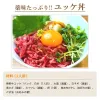 口当たりの滑らかさに加えて、肉の甘味にコクと深みが加わった贅沢な熊野牛ユッケ。 年間の出荷頭数は数百頭である事もあり、かなり希少なブランド牛「熊野牛」の赤身肉を使用したユッケは極少量しか流通しておりません。 是非この機会に最上級のお味をご堪能下さい!! 商品内容 熊野牛ユッケ150g(50g×3個) ユッケのタレ45g(15g×3個) 原材料 【ユッケ】熊野牛赤身肉 【タレ】醗酵調味液(国内製造)、醤油(小麦・大豆(遺伝子組み換えでない)を含む)、味噌、ごま油、砂糖、玉ねぎ、おろしにんにく、おろし生姜、ごま、唐辛子末/甘味料(D-ソルビトール)、酒精、調味料(アミノ酸等)、Ph調整剤(クエン酸、乳酸)、増粘剤(キサンタンガム) 保存方法・賞味期限 加工日より60日(要冷凍-18℃) 解凍後はお早めにお召し上がりください。 産地 和歌山県 加工業者 株式会社Meat Factory 〒649-6322 和歌山県和歌山市和佐関戸25-2