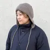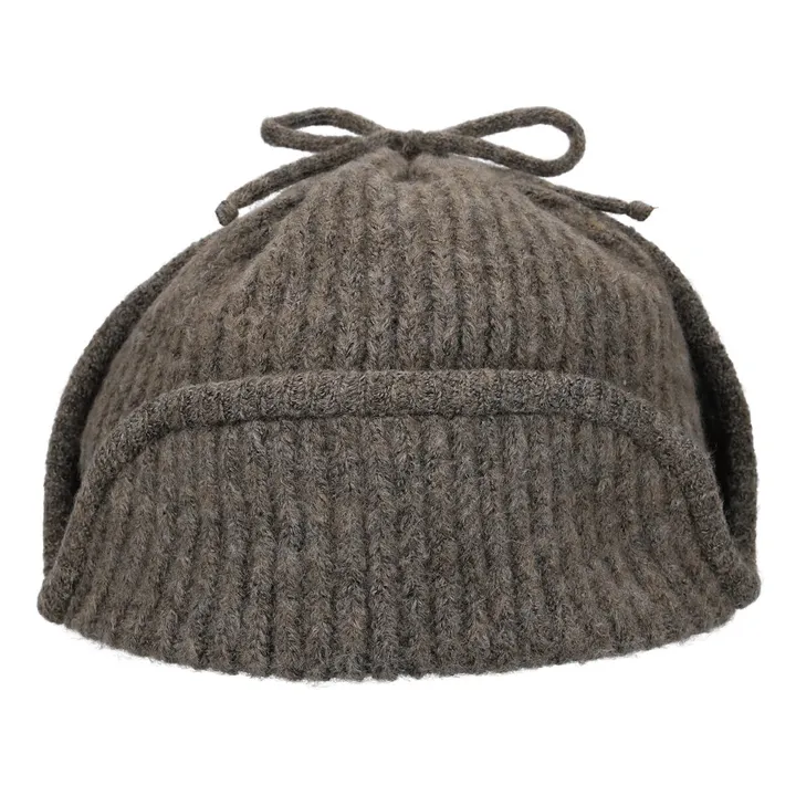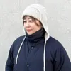 ふわふわ質感のニットフライトキャップ。伸縮性のあるざっくりとしたリブ編み。軽量で柔らかくもウールのようなしっかりとしたタッチ。