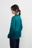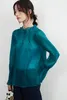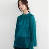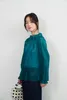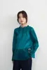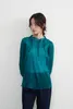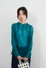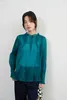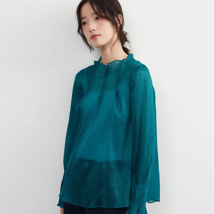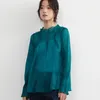 KNXT525・超軽シアー長袖ブラウス・素材の重なりを生かした濃淡の美・タックデザイン・エレガントトップ GREEN/FREE