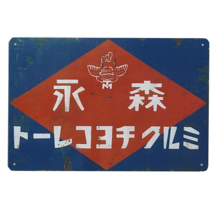 人気の昭和レトロデザインのビンテージ風サインボードです。こちらはA4サイズに近いサイズです。 お部屋・ガレージ・お店・カフェ・店舗のイメージ作りやイメージアップ、ディスプレイ、お部屋のインテリア、壁飾り、催し物、など幅広く活躍します!また掛けやすいように穴が開いているので取り付けも簡単です。  スチールの看板は各地で街頭広告、店内用看板として商用看板として用いられていました。 お部屋やガレージを装飾可能です。 DIY、エイジング塗装、アンティーク塗装、男前系 などのリメイク家具やリメイク雑貨とも相性抜群です。 錆びているように見えますが実際には錆びておりませんのでお部屋を汚すことなく飾っていただけます。