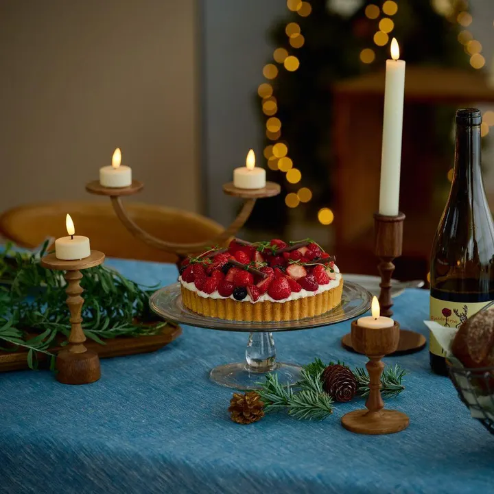 LED ティーライト キャンドルを飾れる、温もりある木製のキャンドルスタンド。アンティークな雰囲気をまとったデザインは、どこか懐かしさを感じさせる佇まい。自然な木目の風合いと、やわらかなフォルムが空間に優しく馴染みます。クリスマスやお誕生日などの特別なシーンはもちろん、いつもの食卓にもさりげなく灯りを添えて。テーブルコーディネートの主役にも、引き立て役にもなる存在感です。飾るだけで、日常が少しだけドラマチックになる。そんなスタンドです。ひっくり返して使えば、LEDキャンドル ボーティブ・LEDキャンドル ピラーを置くことが出来ます。 ACACIA WOODは中心部が濃い茶色で周辺部は白色と、濃淡の差がはっきりとしています。これらを木材そのものの特徴として捉え、原材料を無駄なく使い、限りある資源を大切にしたいと考えています。また、手作りのため商品のサイズや形状にも多少の誤差があります。素材そのものが持つ個体差や、大量生産にはないそれぞれの表情をお楽しみください。