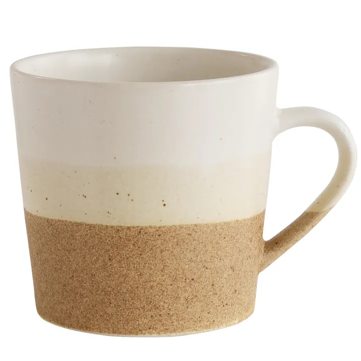 まるでコルクのような温かみのあるデザインのマグカップ。 マグカップの下側はざらざらとした触り心地の釉薬で本物のコルクのような質感を再現。 上側には優しいニュアンスカラーの釉薬を掛け分け、二つの異なる釉薬の対比が楽しめます。 口元や内側はすべすべとした質感の釉薬なので口当たりが良く、お手入れしやすくなっています。 重さは約205gと飲み物を入れても重すぎず、扱いやすい軽さです。