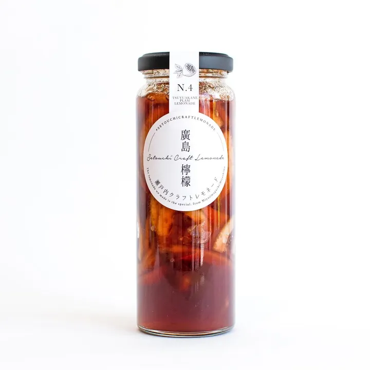「食べる」クラフトレモネード【瀬戸内クラフトレモネード】の瓶詰め。(約5杯分) ◆露茜梅レモネード 和歌山県の希少梅「露茜」使用 すももと紀州梅の掛け合わせの品種で無加工でルビーのような綺麗な色をしています。 ベリーのようなニュアンスが特徴で、あとにひく梅の香りが上品なレモネードです。 【当店のこだわり】 大崎上島産レモンを使用した世界遺産の玄関「宮島口」で作るレモネード 1週間熟成/砂糖5種/無添加/無加水/保存料フリー こだわり抜いた広島の他にないこだわりのレモネードです。 果汁の5~10倍の栄養があるとも言われている果皮をまそのままお召し上がり頂けます。 とけるようにやさしい特別なレモン体験を演出、お湯や炭酸、ウイスキー、白ワインなどはもちろんアイス、ヨーグルトにも。 ◆瀬戸内ブランド登録商品◆ 原材料はレモン、露茜梅に砂糖5種のみ。余計なものは一切なし。 保存料などの添加物は不使用。 果汁の5倍以上の栄養素が詰まった「生レモンピール」入り。 使用する砂糖は阿波和三盆糖や腸内環境を整えGI値の低い甜菜糖やきび砂糖など5種をブレンド。 そのまま食べたりするのはもちろん、他にもたくさんお楽しみいただけます。 【おすすめの楽しみ方】 ・糖水(シロップと果実)をソーダやお湯、お茶などに加えてお楽しみいただけます。(5杯分目安) ・アルコールにもおすすめです。ハイボールは特にご好評いただいております。 ・ケーキなどにも。レアチーズケーキやガトーショコラに加えていただくととても大人な雰囲気をお楽しみいただけます。 広島名産のお土産品、お取り寄せ品として。 ※弊社では商品案内のリーフレット、飲み方のレシピ、POP印刷データをご提供しております。 ご希望の方はお気軽にご連絡くださいませ。